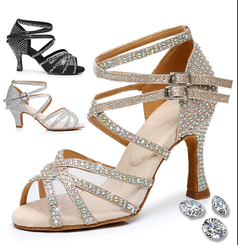 Zapatos de baile latino para mujer, 7,5 cm, diamantes de imitación, salón de baile, Salsa, Bachata, boda, actuación, fiesta, zapatos de baile